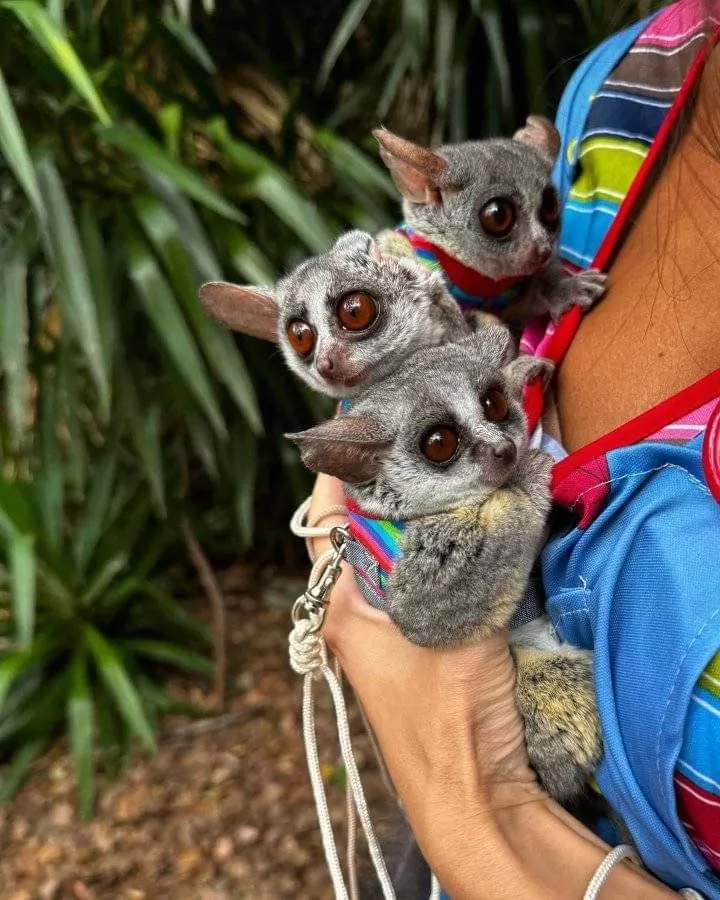 2 Monate alte Galago-Geschwister, 2 Männchen und 1 Weibchen